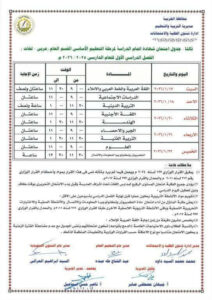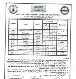 جدول الصف الثالث الإعدادي الترم الأول 2026 محافظة المنوفية
