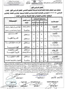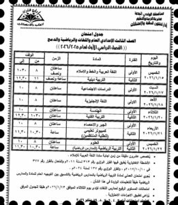 جدول الصف الثالث الإعدادي الترم الأول 2026 محافظة كفر الشيخ