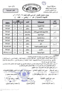 جدول الصف الثالث الإعدادي الترم الأول 2026 محافظة الدقهلية