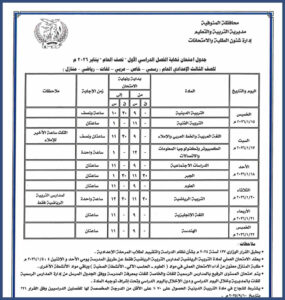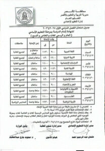 جدول الصف الثالث الإعدادي الترم الأول 2026 محافظة دمياط