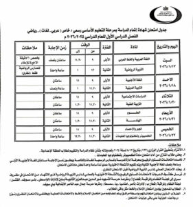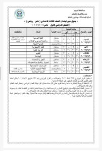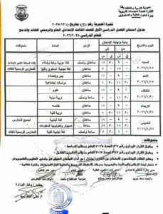 جميع المحافظات ..جدول امتحانات الصف الثالث الاعدادي ٢٠٢٦ بالكامل
