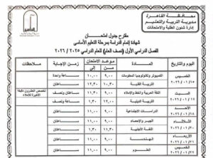 جدول الصف الثالث الإعدادي الترم الأول 2026 محافظة القاهرة