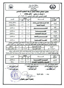 جدول الصف الثالث الإعدادي الترم الأول 2026 محافظة شمال سيناء