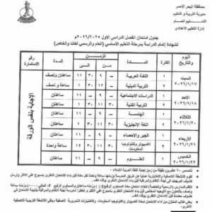 جدول الصف الثالث الإعدادي الترم الأول 2026 محافظة البحر الأحمر