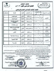 جدول الصف الثالث الإعدادي الترم الأول 2026 محافظة المنيا