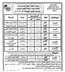 جدول الصف الثالث الإعدادي الترم الأول 2026 محافظة البحيرة